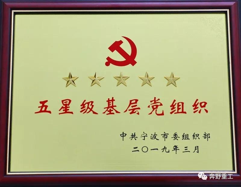 2019/10/29今年是中國(guó)共產(chǎn)黨成立98周年,新中國(guó)成立70周年,也是全面貫徹新時(shí)代黨的組織路線的開局之年。為謀劃開展“不忘初心、牢記使命”主題教育,扎實(shí)推進(jìn)“溫故知新、知行合一”學(xué)習(xí)實(shí)踐活動(dòng),根據(jù)《中國(guó)共產(chǎn)黨黨內(nèi)功勛榮譽(yù)表彰條例》和《中國(guó)共產(chǎn)黨浙江省委員會(huì)黨內(nèi)功勛榮譽(yù)表彰實(shí)施細(xì)則》規(guī)定,決定評(píng)選表彰一批優(yōu)秀共產(chǎn)黨員、優(yōu)秀黨務(wù)工作者和先進(jìn)基層黨組織。日前,浙拖奔野(寧波)拖拉機(jī)制造有限公司黨支部有幸被評(píng)定為寧波市“五星級(jí)基層黨組織”。