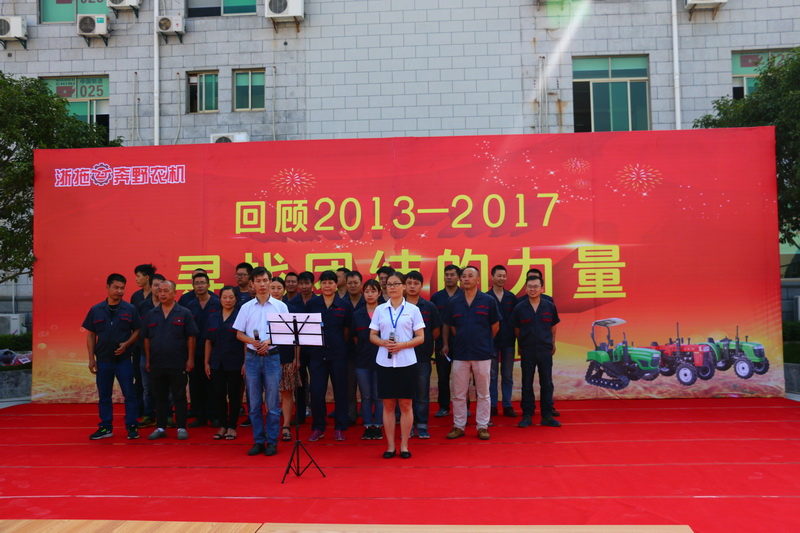會(huì)上部分新老員工根據(jù)在公司的親身經(jīng)歷,向大家講述了公司的成長(zhǎng)歷程,也分享了自己在公司工作的這幾年體會(huì)最深的感觸,從最初的“沒(méi)有路自己建、窗外大雨車間小雨”的現(xiàn)狀到第一臺(tái)拖拉機(jī)成功下線、第一次參加國(guó)際農(nóng)機(jī)展、第一臺(tái)“9.19”慶典活動(dòng)……再到現(xiàn)在的成功購(gòu)地建新廠、成功登錄新三板、獲得業(yè)界內(nèi)外的認(rèn)可,包涵了多少奔野人的汗水和淚水。一路艱辛一路風(fēng)雨,奔野人憑借著一股韌勁、闖勁創(chuàng)造了一個(gè)又一個(gè)的奇跡……