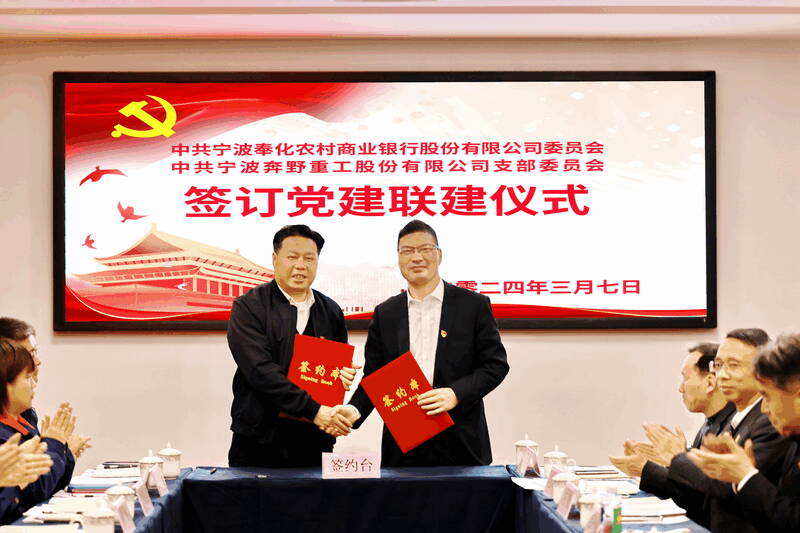 2024年3月7日,中共寧波奉化農(nóng)村商業(yè)銀行股份有限公司委員會(huì)與中共寧波奔野重工股份有限公司支部委員會(huì)以“黨員聯(lián)學(xué)、活動(dòng)聯(lián)辦、服務(wù)聯(lián)抓、陣地聯(lián)建”為主題的黨建聯(lián)建活動(dòng)在寧波奔野重工股份有限公司隆重舉行。